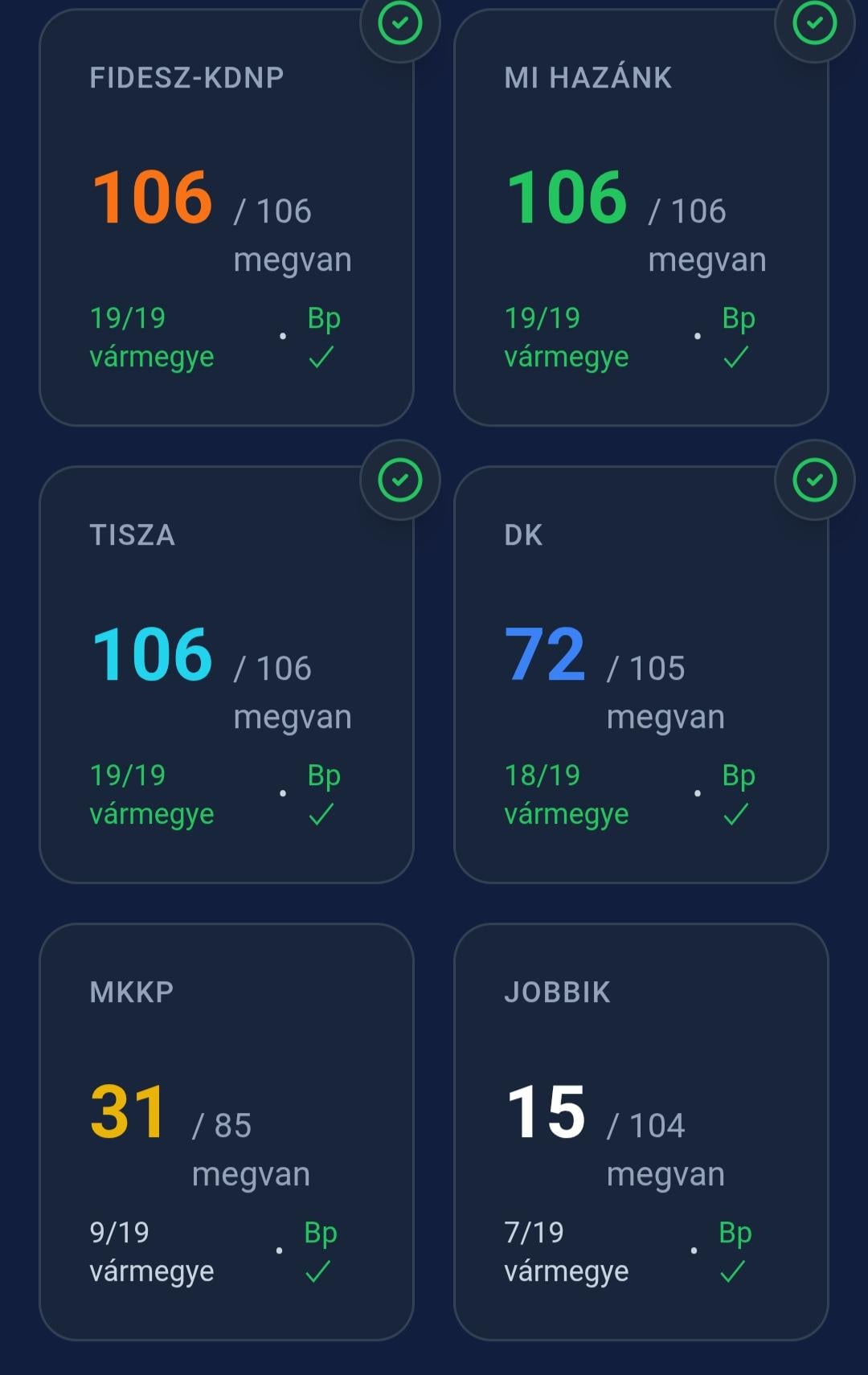 nagyon vicces lenne ha az MKKP-nak végül nem jönne össze és őszintén amúgy kétlem hogy tisztességes módon össze jön. Lassan másfél hete szenvednek és van nekik 31 és még kell 41 és 10 vármegye, nem látom hogy meg lenne.
