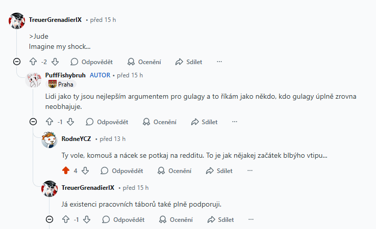 Difficult_Loquat7668 on 04/03/2026 09:07 Ty voe oni se fakt shodnuli na tom, že by se navzájem poslali do koncentráku? Comedy gold