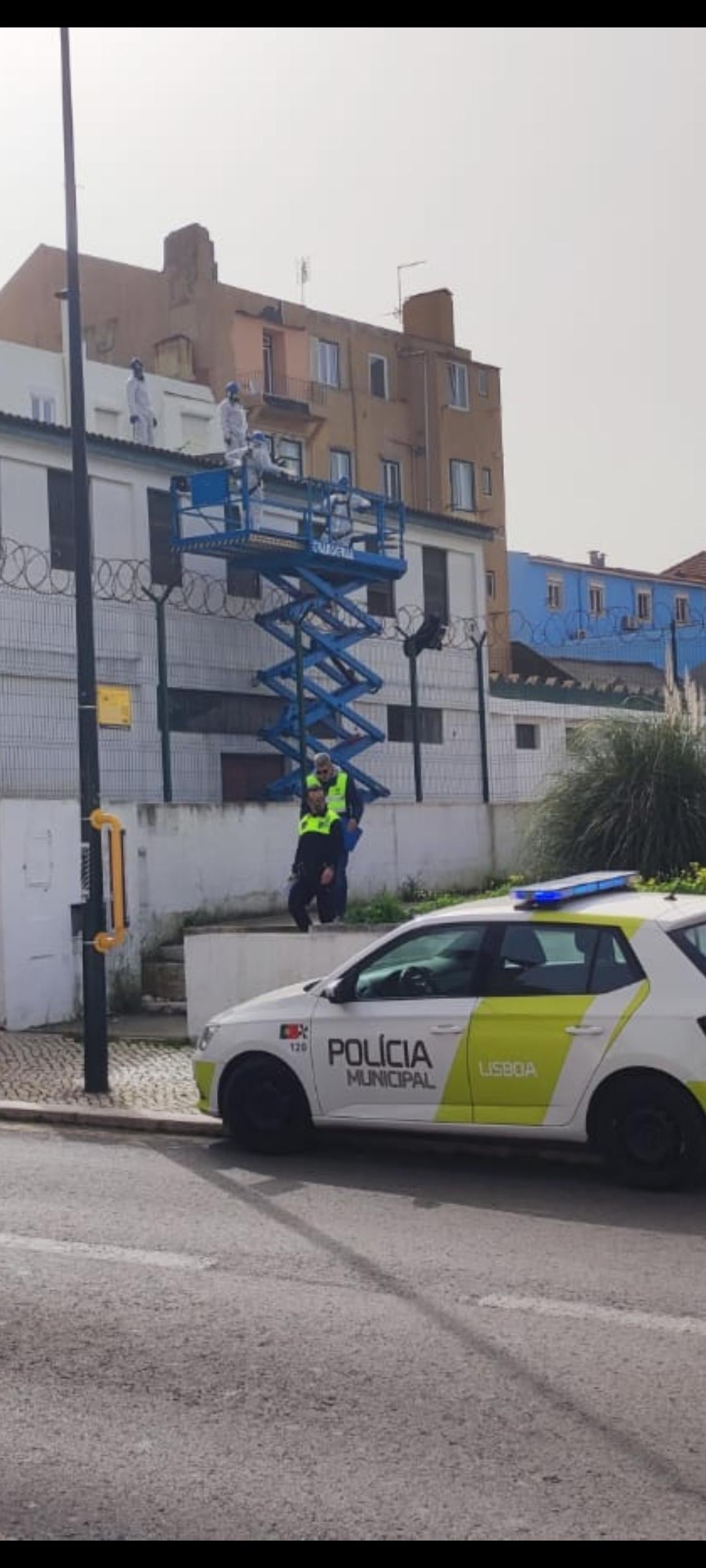 Não sei se a intervenção está ou não a cumprir as normas e se há ou não o dever de informação dos vizinhos mas os trabalhadores parecem devidamente equipados. Ou seja, não me parece uma intervenção ilegal.