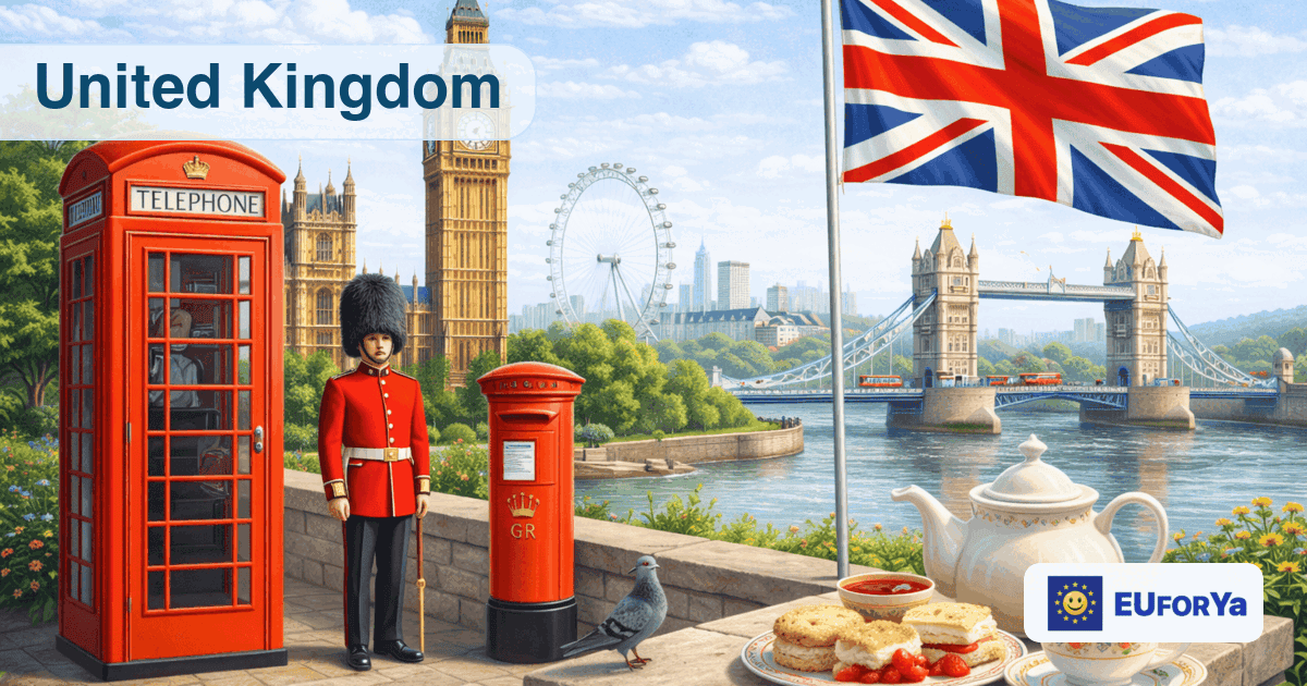 A bit off topic, but that picture is just so poor, UK represented by a very small part of London with GR on the postbox, a Grenadier holding a stick, a New York skyline of skyscrapers and tomato soup with scones.