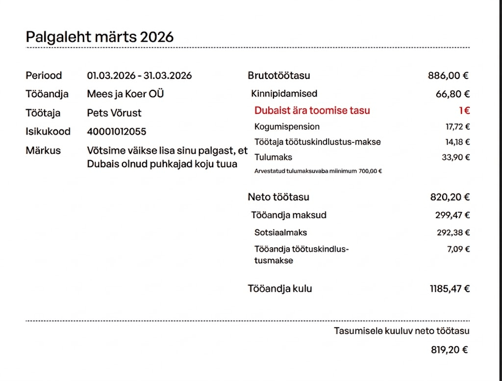 See Dubai on sul vale asja all, bruto ja neto on õiged, seega tasumisele kuuluv peab olema seal pärast netot, sest selle eest mingeid makse ei ole arvestatud.