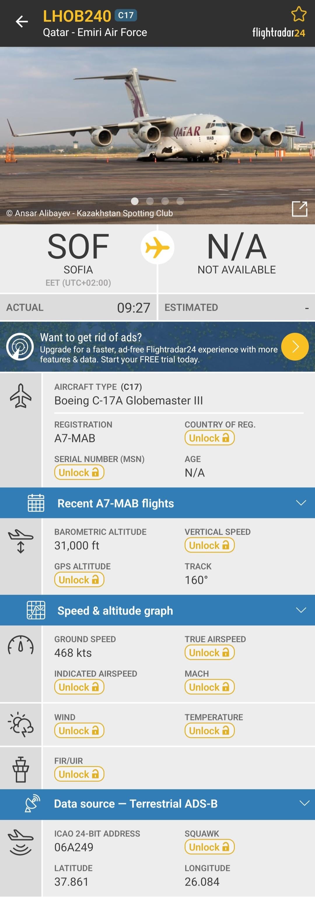 Perché gli aerei militari del Qatar decollano da Sofia? Ne ho sentito uno mentre decollava e passava sopra di noi (metà isolato è uscito per vedere cosa stava succedendo), e l’altro l’ho trovato per caso sopra il Qatar durante l’atterraggio.