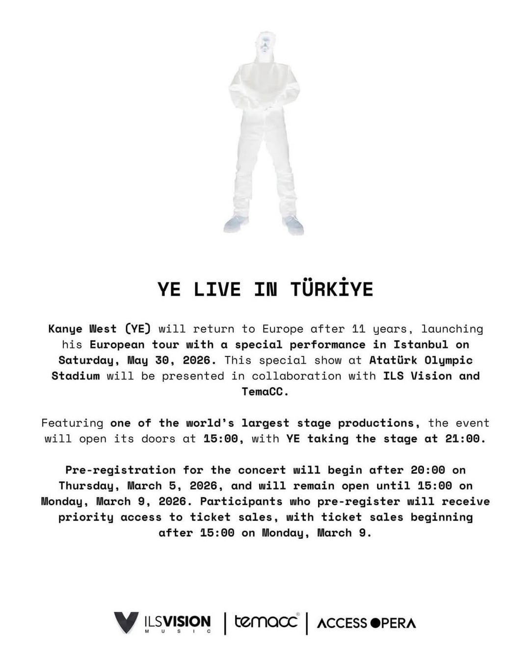 È ufficiale: Kanye West sarà a Istanbul il 30 maggio. Lunedì è prevista la prevendita. https://www.reddit.com/gallery/1rll9vx di tttolga