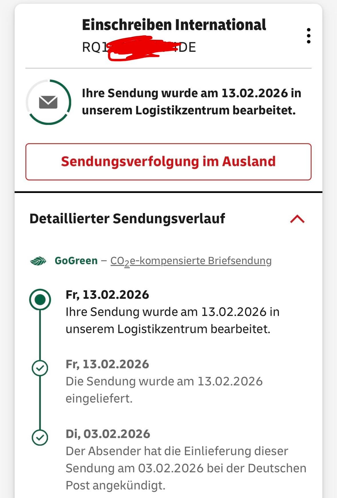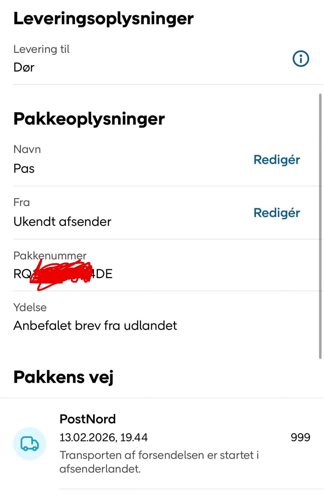 L’ambasciata lo ha spedito il 13 febbraio. Sono in grado di rintracciarlo su PostNord, Deutsche Post e DHL. Ma lo stato della spedizione non è cambiato da quando è stata pubblicata il 13 febbraio.