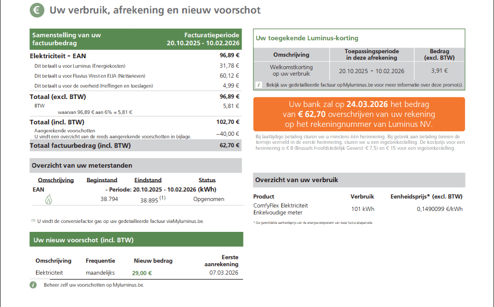 6. Jouw verbruik is 101kWh. Dit is zeer laag. Hierdoor wegen vaste kosten sterk door.