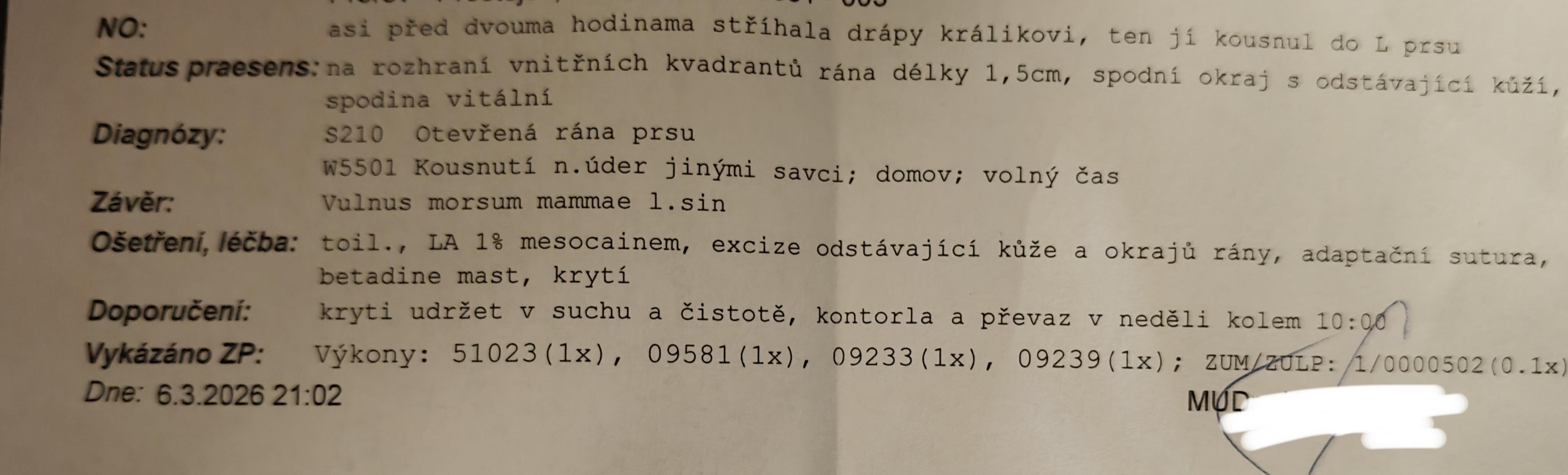 Já četla “kousnutí do I. prstu” a říkala si, že kousanec do palce je blbej, ale není to tak hrozný… Beru to zpátky, bolí mě to jen to čtu a přeju přítelkyni brzkou rekonvalescenci.