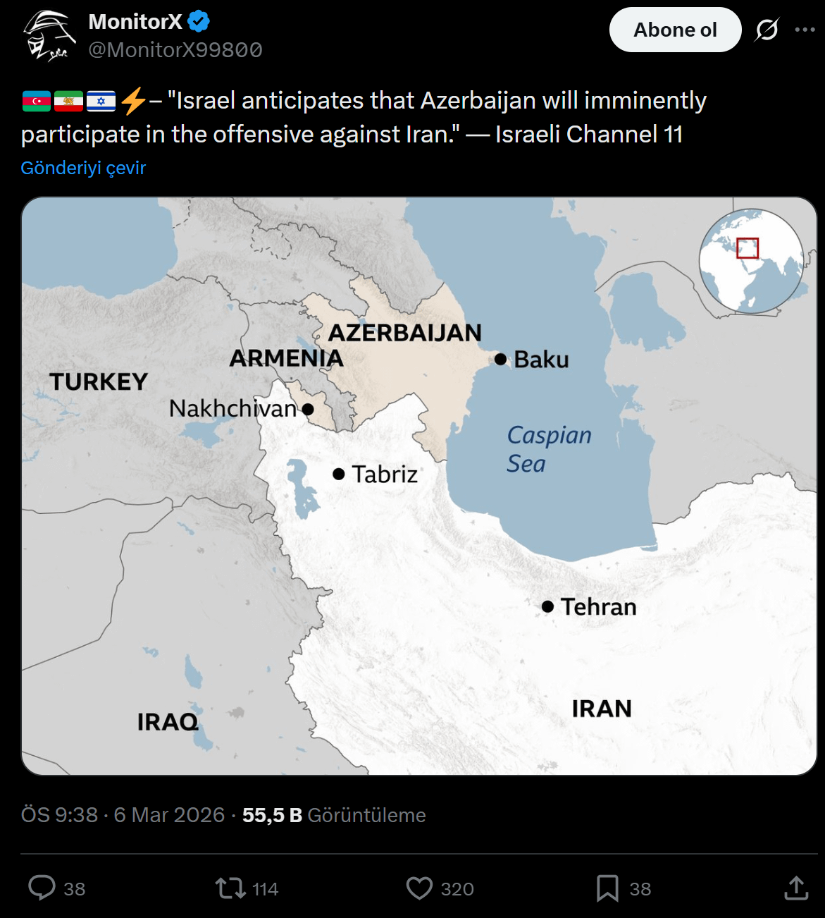 BabylonianWeeb on 06/03/2026 21:27 Told you that “Israel” is using Azerbaijan but I got dwonvoted for it here.