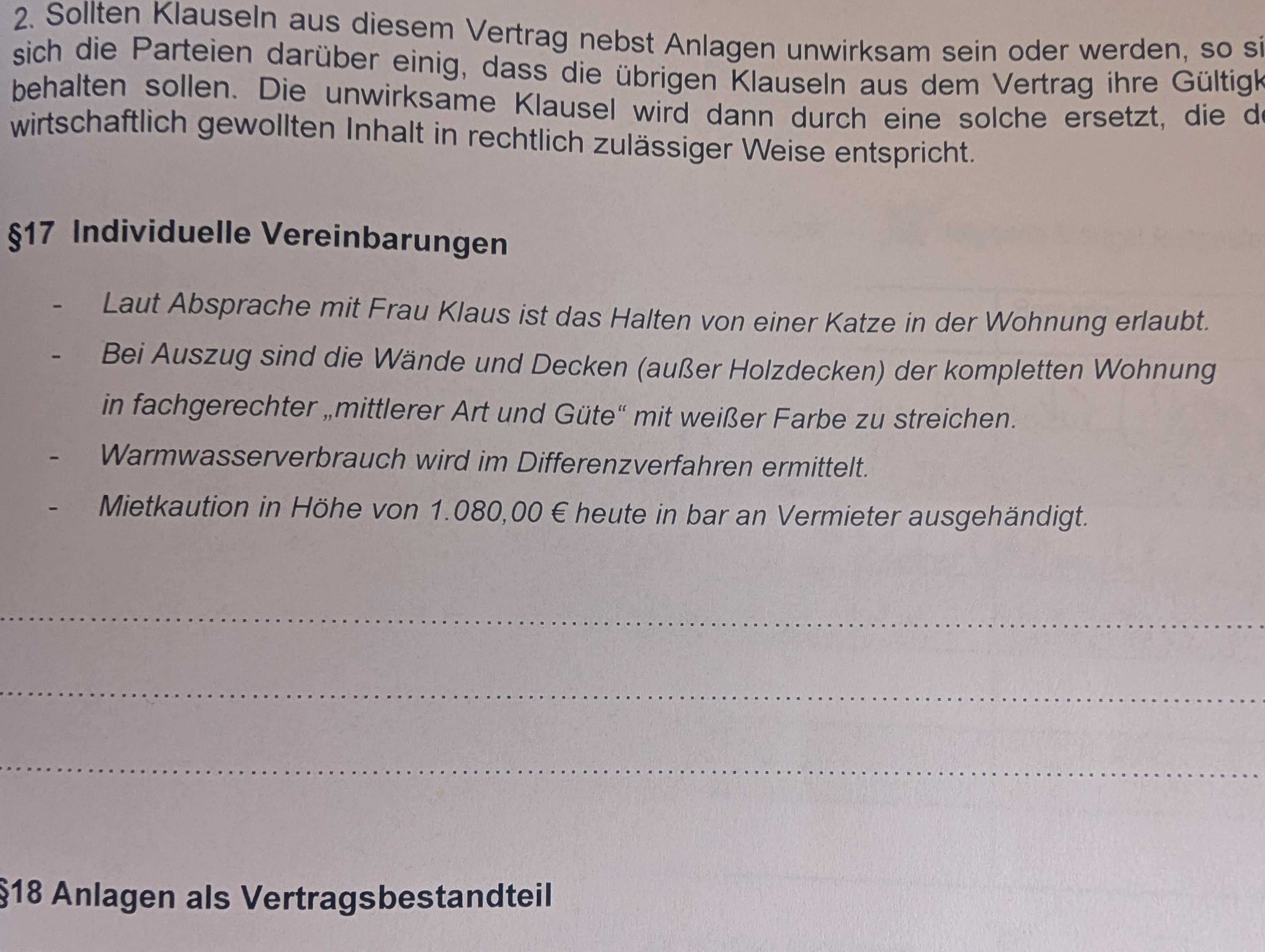 Hanno messo il paragrafo che vedi sopra nel Mietvertrag e il proprietario mi ha già contattato tramite SMS dicendomi che bisogna farlo. Ha anche già detto al nuovo ragazzo che verrà dopo di noi che dipingeremo tutto nuovo.