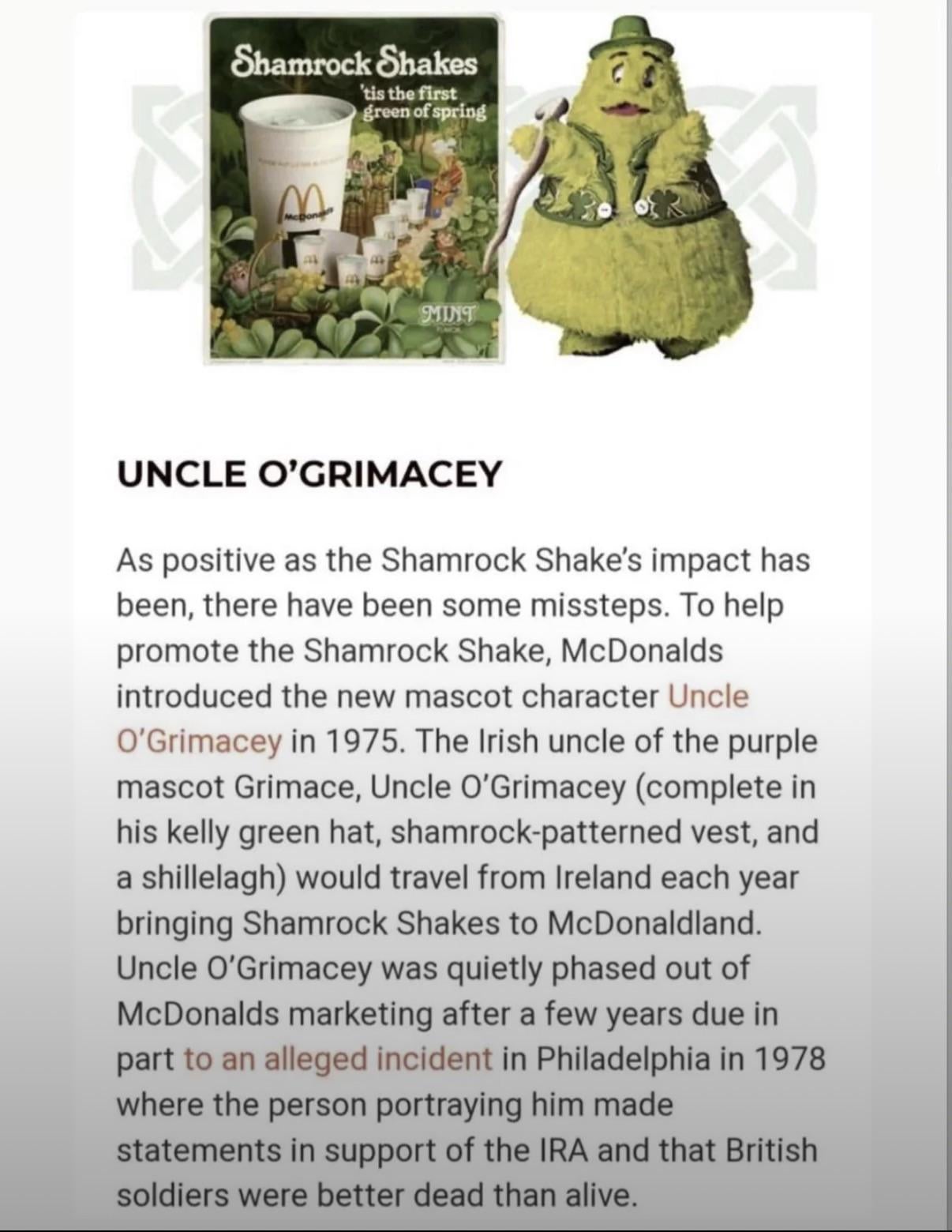 He looks like a fun character. No idea what he’s supposed to be but it’d make me more likely to try a shamrock shake.