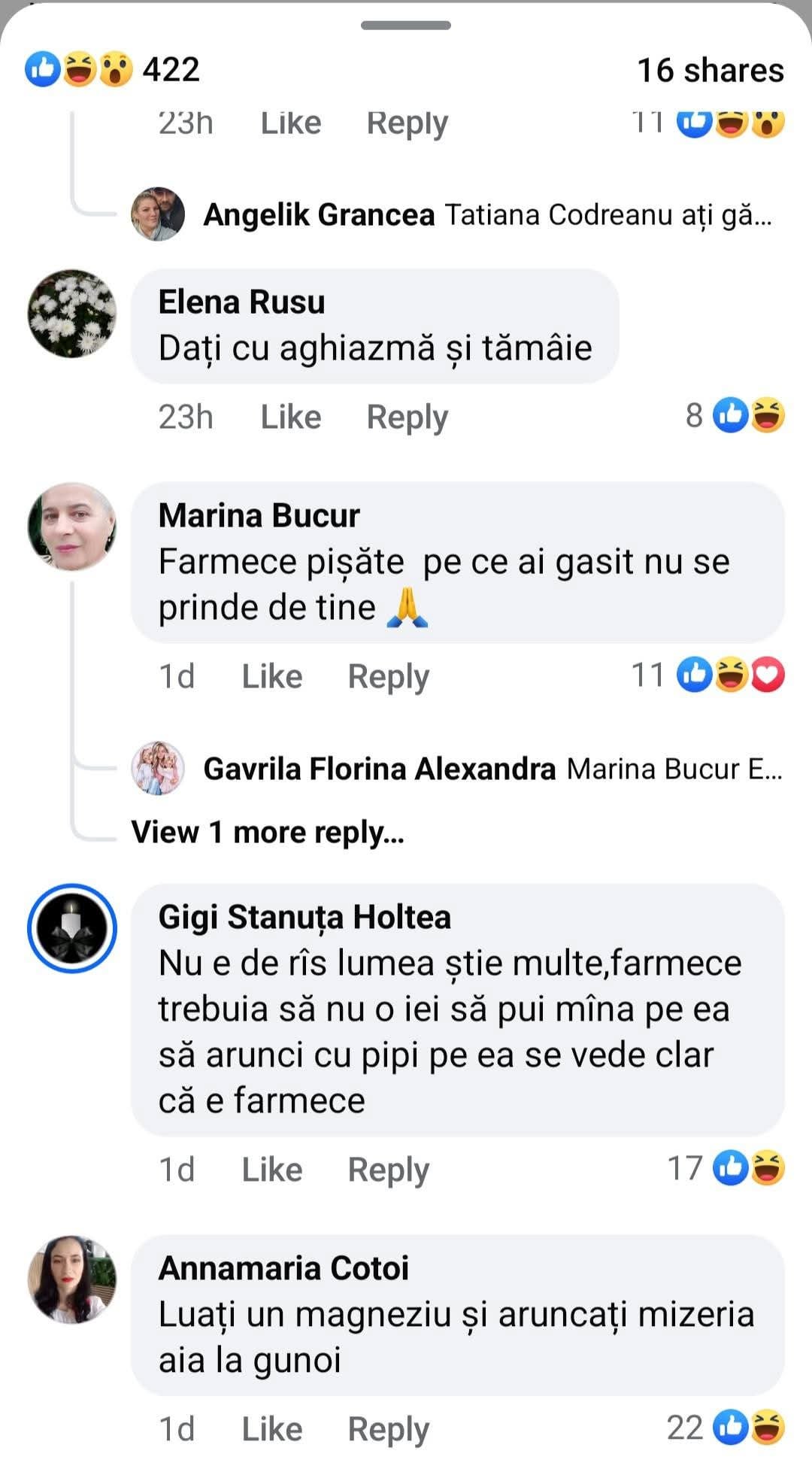 Pfuuu, am vazut un grup de genul pe facebook unde lumea cauta vrajitoare si vorbesc despre aceste farmece. Sunt lucruri inradacinate adanc in mintea unora, mai ales pe la sate.