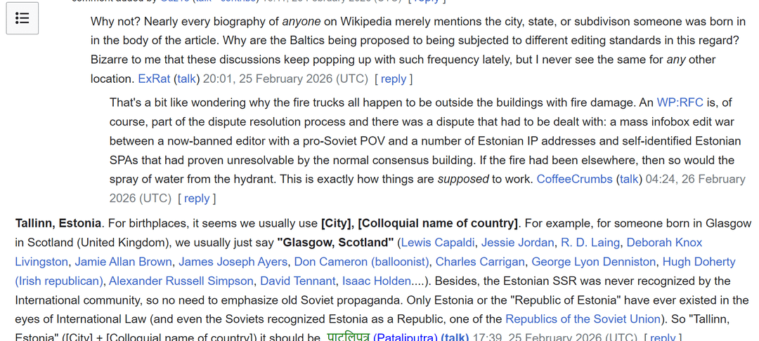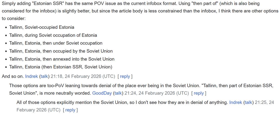 WillyNilly1997 on 07/03/2026 20:33 [Further](https://news.err.ee/1609903256/estonian-volunteers-struggling-to-protect-wikipedia-from-russian-propaganda) [context](https://united24media.com/latest-news/pro-russian-narratives-target-wikipedia-marking-a-dangerous-trend-for-ai-chatbot-data-15230) [for](https://balticsentinel.eu/8394326/wikipedia-s-baltic-battle-estonian-journalists-warn-of-coordinated-pro-soviet-edits-lithuania-reports-similar-targeting) [you](https://bnn-news.com/russian-propaganda-machine-corrects-wikipedia-entries-estonians-try-to-fight-back-275849)