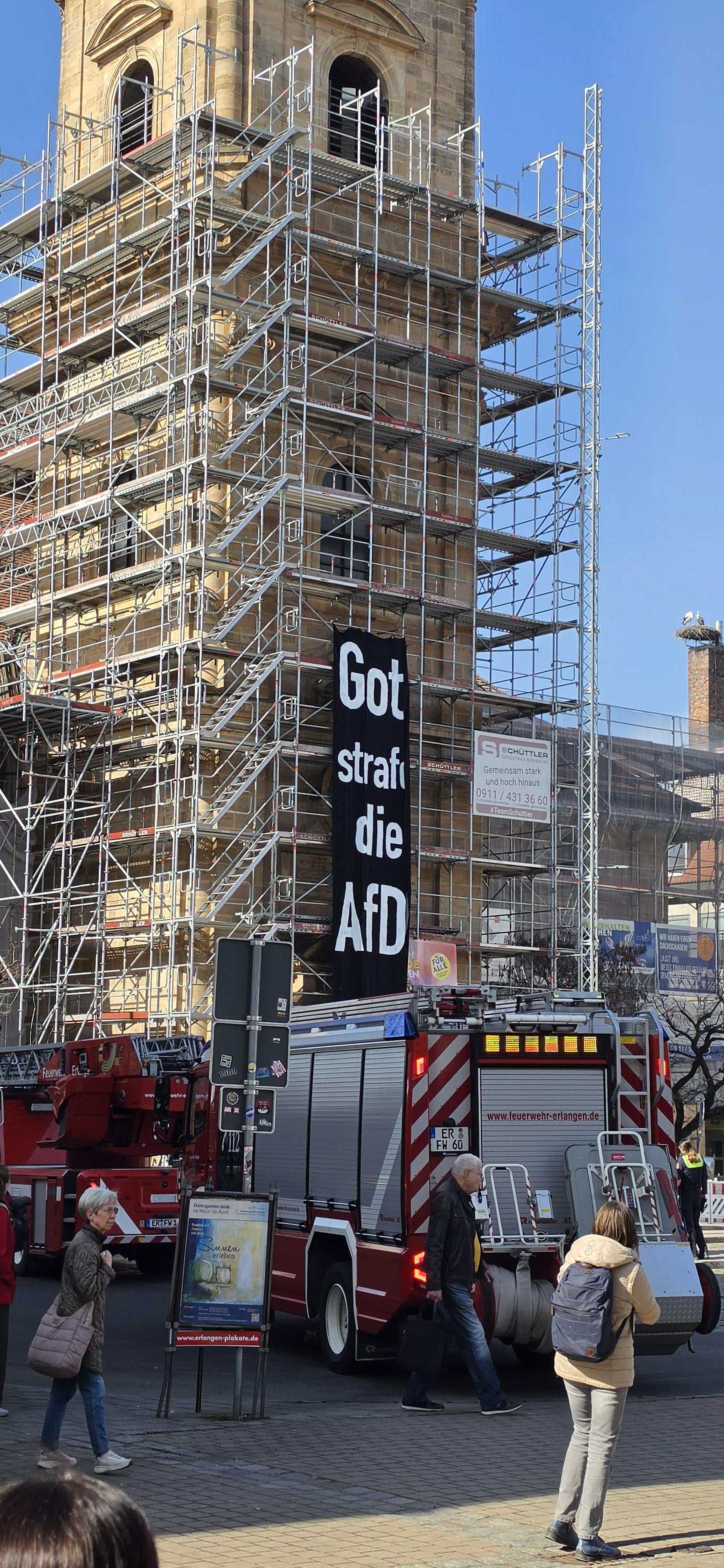 "Dio benedica l’AfD" è stato appeso nella chiesa proprio di fronte allo stand dell’AfD. Furono chiamati un sacco di Polezei e Feuerwehr. https://i.redd.it/ebst97ib6png1.jpeg di Watzup77