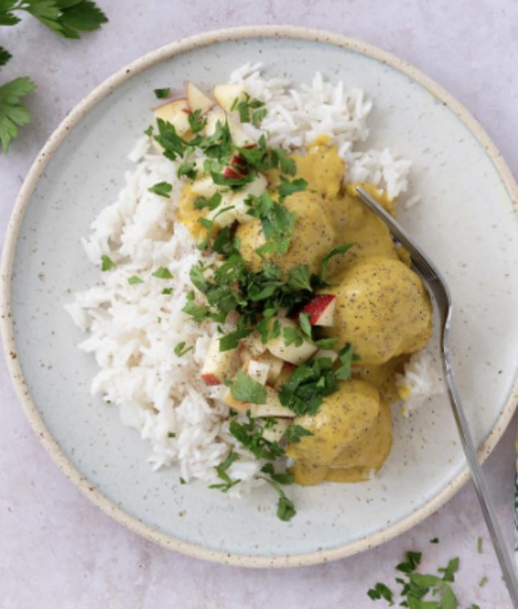 Men vil du slå benene væk under dine gæster så er det ikke kun karry der tæller. Jeg vil formode at din opskrift allerede indeholder revet eller snittet æble, hvis ikke så er du pænt meget på afveje, eftersom jeg kan se æble på billedet, korriander virker også fint.