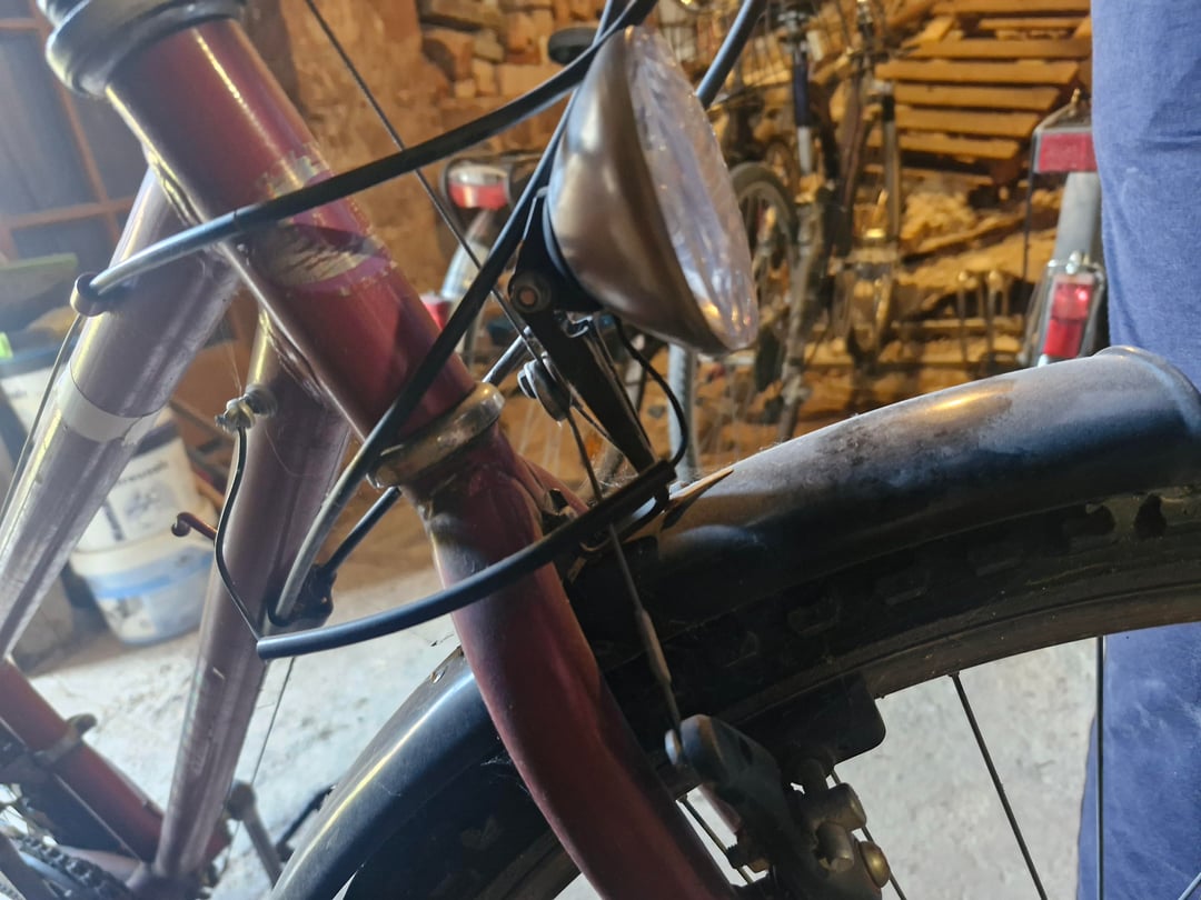 Google e.g. “Axa 8201 Dynamo” and slap one on there. Doesn’t seem to be the kind of bike where you’d put on an expengine hub dynamo, though they work waaaaay better (but at over 10x the cost of the simple one)