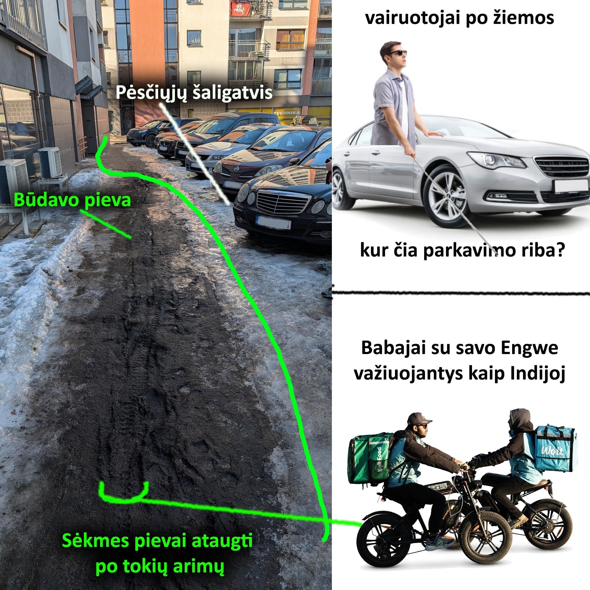 Kaip matau, čia pirmiausia projektavimo klaida. Ir dėl automobilių, ir dėl „pievos“, kuri čia tiesiog pasmerkta tapti purvynu. Tokiose vietose turi būti kietoji danga, ir tiek.
