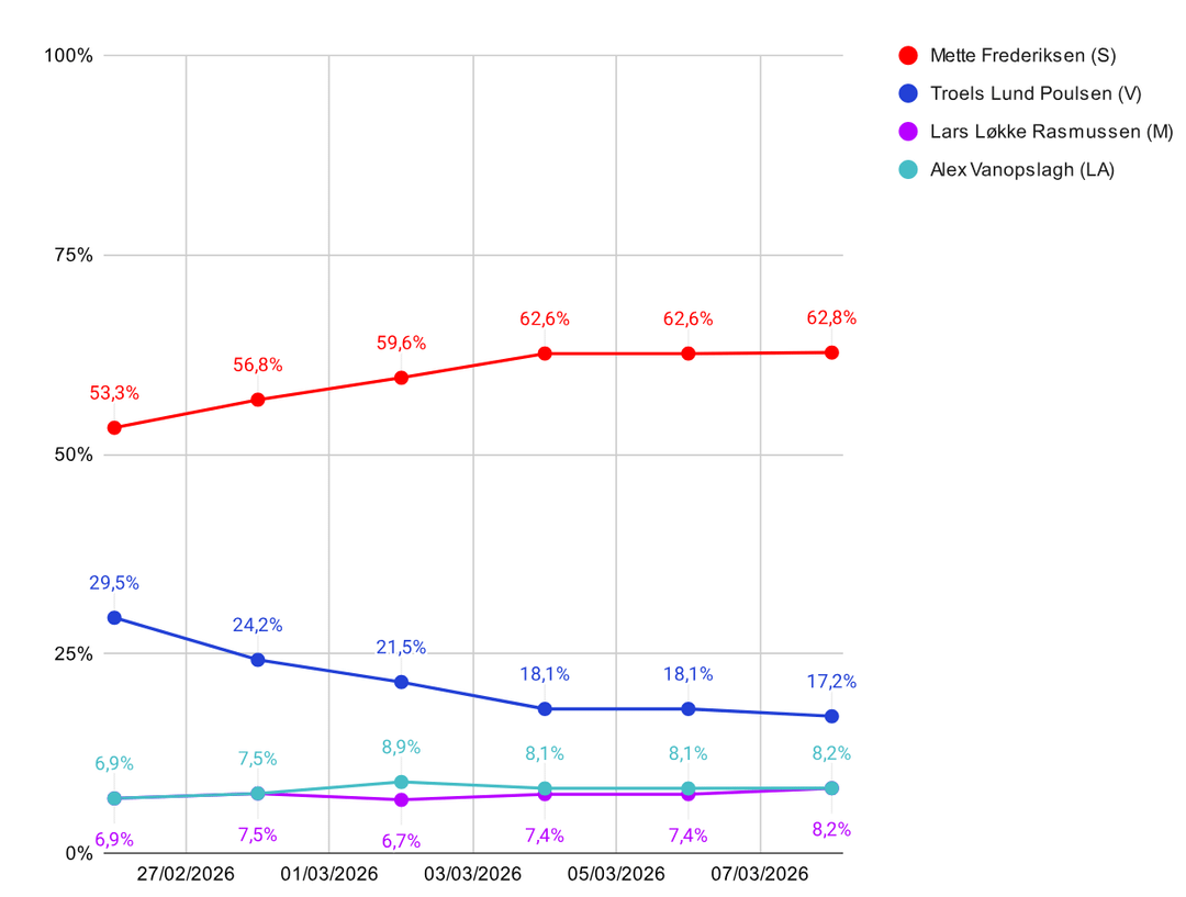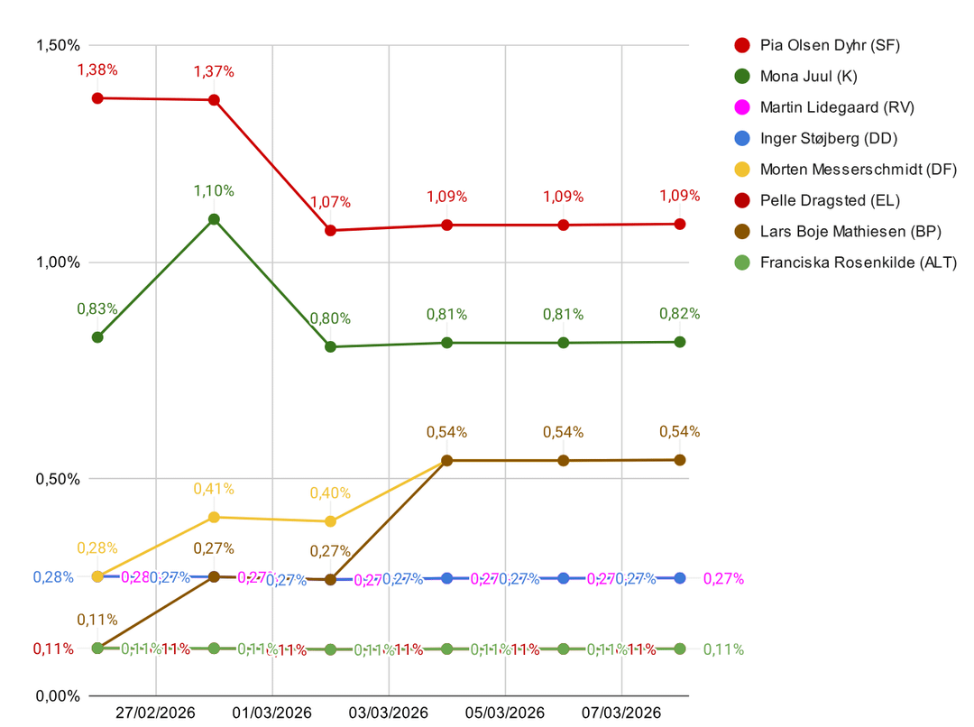 I grafici mostrano la probabilità che i diversi leader dei partiti diventino primo ministro dopo le elezioni del 24 marzo e il loro andamento nella prima settimana di campagna elettorale. Presta attenzione alla differenza molto significativa tra gli assi y nelle 2 immagini 🙂