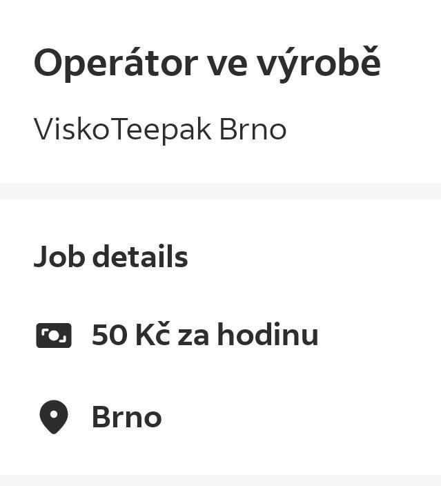 antrax_leak on 09/03/2026 19:01 https://viskoteepakczechrepublic.teamtailor.com/jobs/3730648-operator-ve-vyrobe 50 Kč na hodinu jsou příplatky, ne plat.