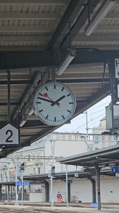 The clock is fake and it’s aligned with the train arrivals. That’s why Swiss trains are always on time on paper, but that’s actually the biggest lie ever created by the Swiss. On the other hand, German trains use real clocks and show you the real time.
