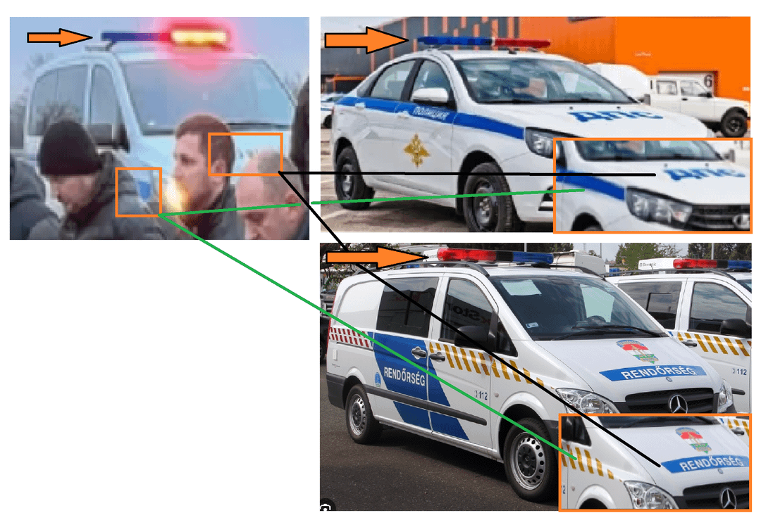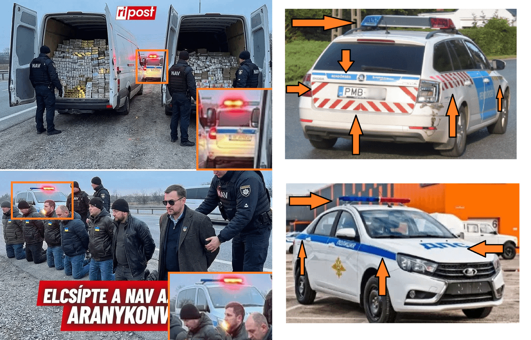 La rappresentazione visiva delle due auto della polizia nella foto pubblicata dal giornalista non ci presenta affatto l’immagine di una tradizionale auto della polizia ungherese. Sebbene molte persone abbiano subito notato l’inautenticità delle uniformi destinate a rappresentare il popolo della NAV e la natura ucraina delle loro cuciture, anche io sono stato catturato dalle auto.