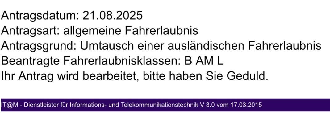 Ho presentato la domanda per l’Umschreibung della patente di guida nell’agosto 2025. Da allora non ho più ricevuto risposta da loro.