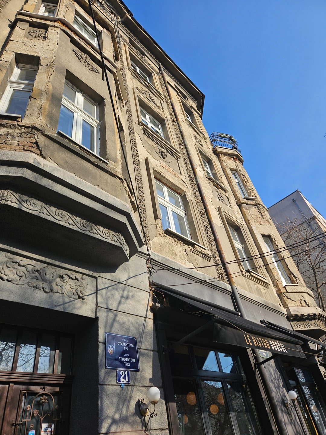 Su Studentski trg questa mattina alle 8:20 questa scena. Non so in che ordine è questa vecchia facciata in centro che grida di essere rinnovata? Il concorso per la ristrutturazione è stato bandito un paio di anni fa, e i risultati sono usciti dai primi cento edifici che si prevede di ristrutturare nel centro della città. Nel frattempo non è stato fatto nulla, si aspettava che si formasse l’assemblea cittadina, poi il bilancio, e tutto questo è fatiscente e aspetta solo che cada in testa a qualcuno. Mentre noi costruiamo acquari e mettiamo soldi nelle tasche degli investitori edili privati, a Belgrado gli edifici crollano.