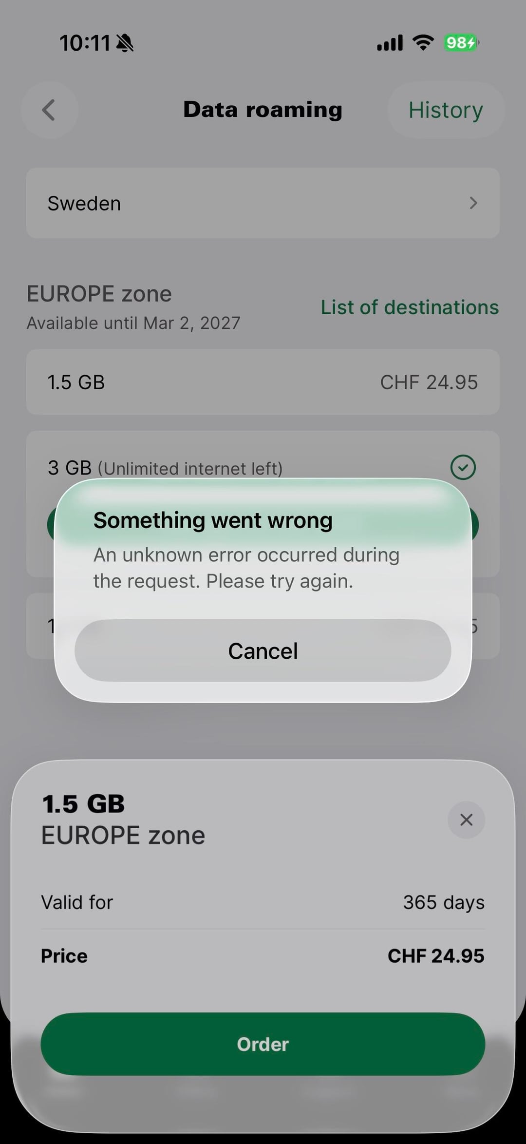 Mentre viaggiavo all’estero, ho acquistato un pacchetto dati Europa perché avevo bisogno dell’accesso a Internet per mappe, traduzione e navigazione di base. Nonostante il pagamento del pacchetto, i dati mobili non hanno mai funzionato. L’app mostrava 0 KB utilizzati, il che significa chiaramente che il servizio per cui ho pagato non è mai stato utilizzabile.