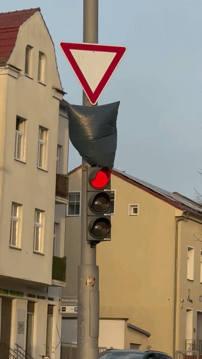 There is a traffic sign under there, the trash bag blocks it