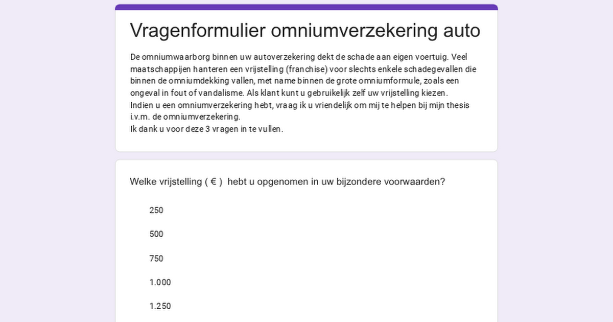 Naturalmente in uno studio non si può dare per scontato nulla, motivo per cui vorrei condividere questo modulo. Queste sono 3 domande riguardanti la scelta del franchising all’interno della garanzia globale della tua polizza auto.