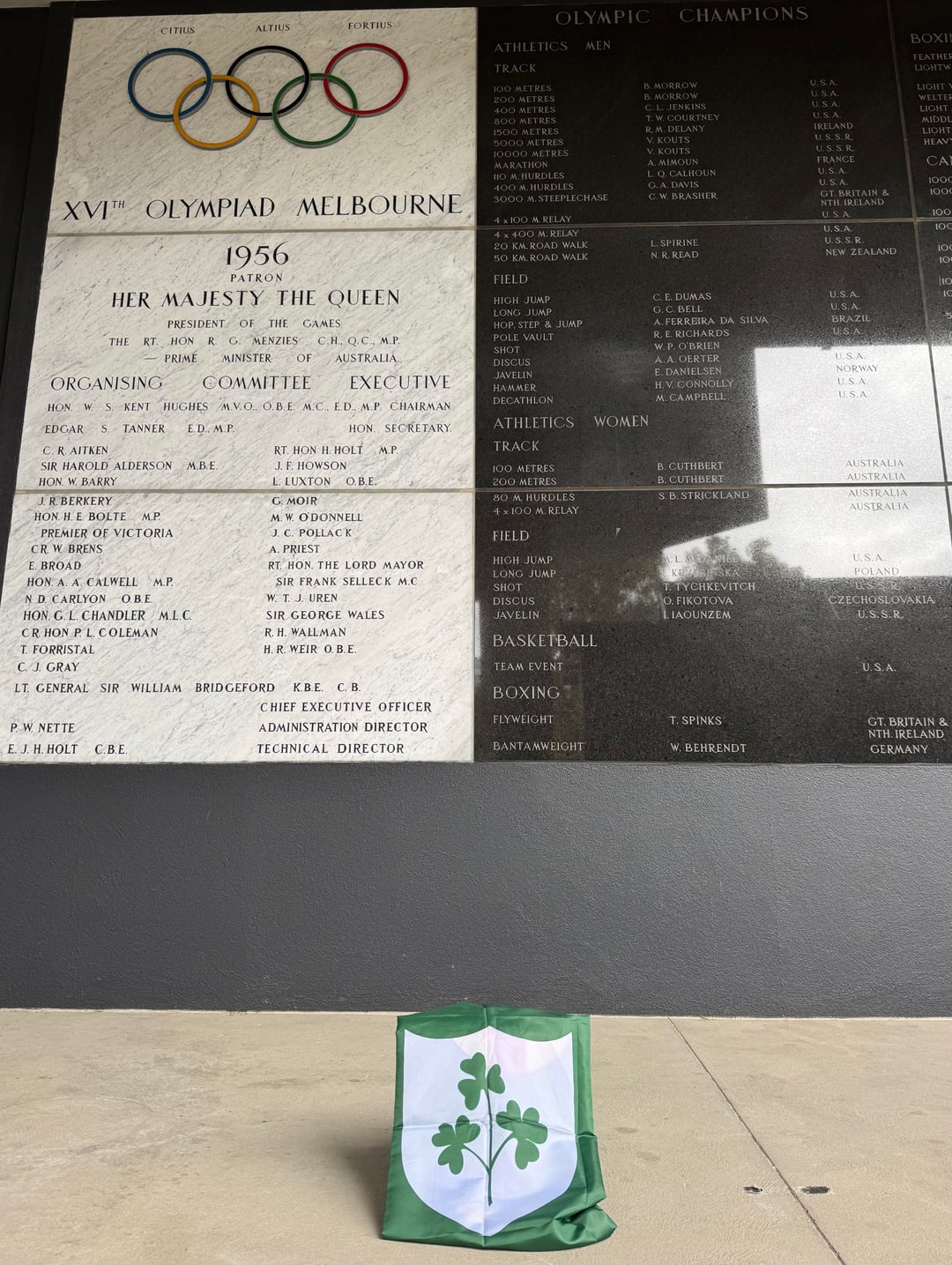 Mi sono svegliato oggi per sentire la triste notizia su Ronnie Delany e mi sono sentito obbligato a dirigermi al Melbourne Cricket Ground, dove il nome di Delany è orgogliosamente quinto in cima alla lista dei campioni olimpici ai Giochi Olimpici del 1956.