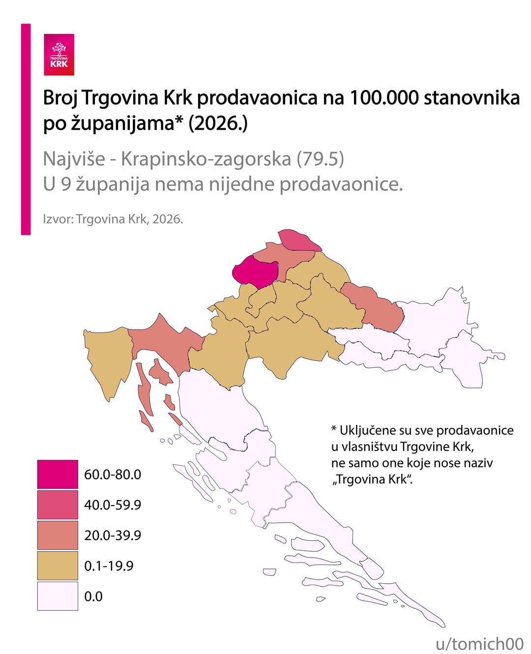 Pojma nisam imao da postoji trgovina Krk a kamoli da je najbrojnija u nekim zupanijama.