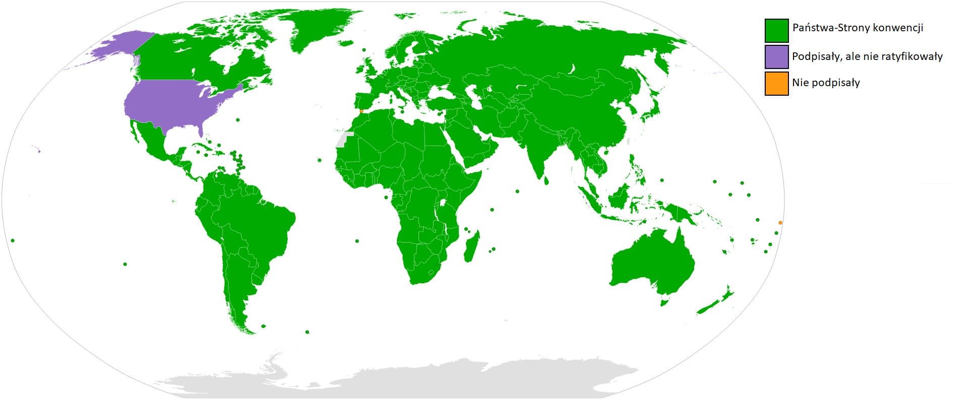 Jedynym państwem należącym do ONZ, które Konwencję podpisało, ale nie ratyfikowało są Stany Zjednoczone Ameryki.