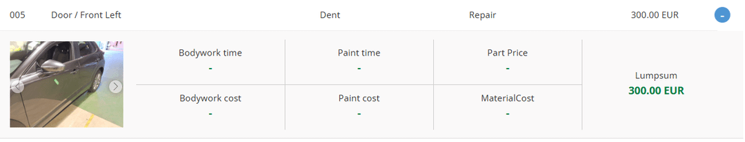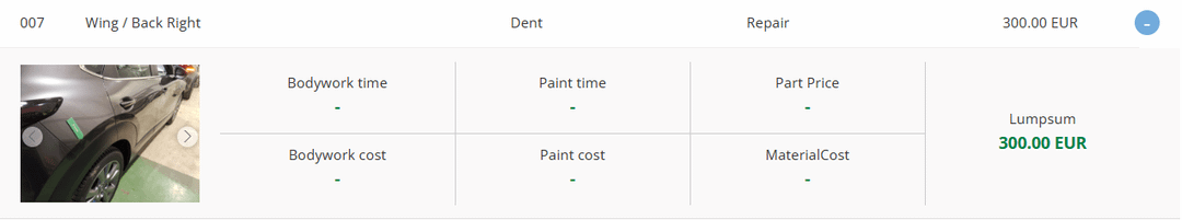 Op basis van het expertiserapport en de bijgevoegde foto’s gaat het om twee kleine, lokale deukjes. In het rapport worden geen bodywork time, paint time, part price of material cost vermeld; er wordt enkel tweemaal een identieke lumpsum van €300 aangerekend. Daarom verzoek ik u vriendelijk om een herbeoordeling van deze eindafrekening.