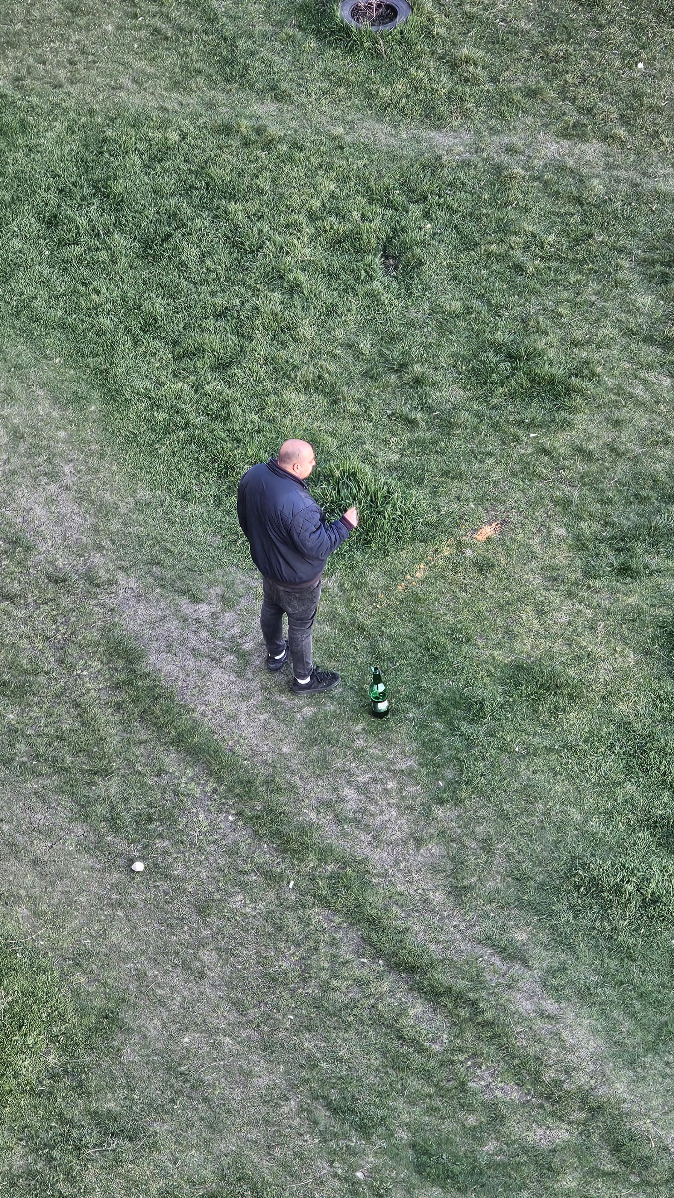 Lo fa per circa un’ora, poi se ne va. La prima volta che l’ho visto è stato nel 2023. Poi l’ho filmato e ho mandato il video agli amici, era piuttosto divertente, non mi aspettavo che diventasse un atto sistematico. Dopo un po’ è tornato una seconda volta (giusto per notare che queste sono le volte in cui l’ho visto, probabilmente più spesso) Di solito è pomeriggio o sera, ma è sempre alla luce. Si siede in posizione eretta, non parla, è senza telefono, beve birra e comincia a vomitare, la seconda volta che ho deciso di guardare e cioè – un’ora intera, forse di più. Devo averlo notato altre 4-5 volte dopo, poi non l’ho più fatto, ma non significa che non sarebbe venuto.