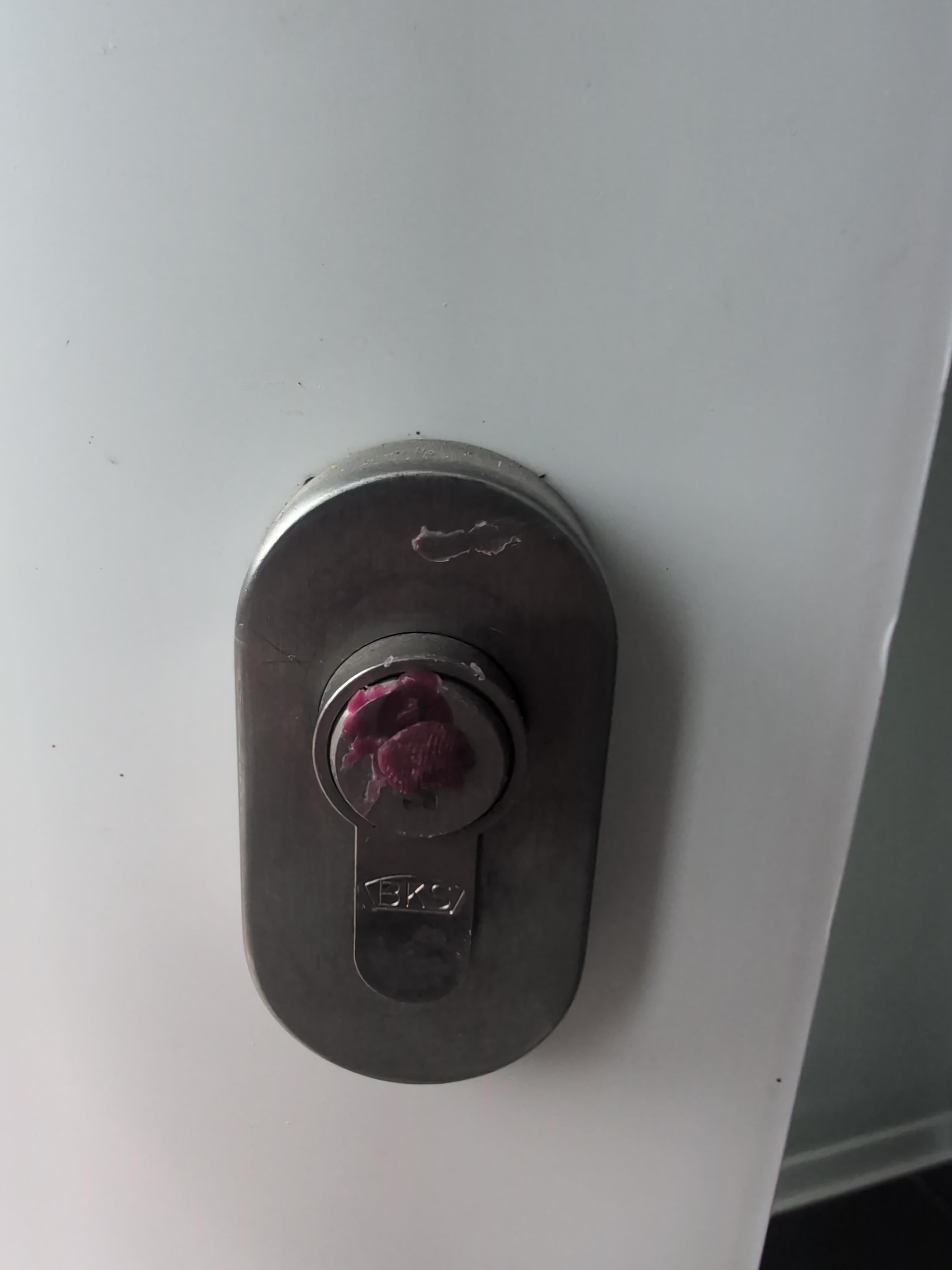 Das ist ne übliche Sache bei Einbrechern. Die markieren so oft Türschlösser um die später wieder zu erkennen und in manchen Fällen eine Form für den Nachbau eines Schlüssels.