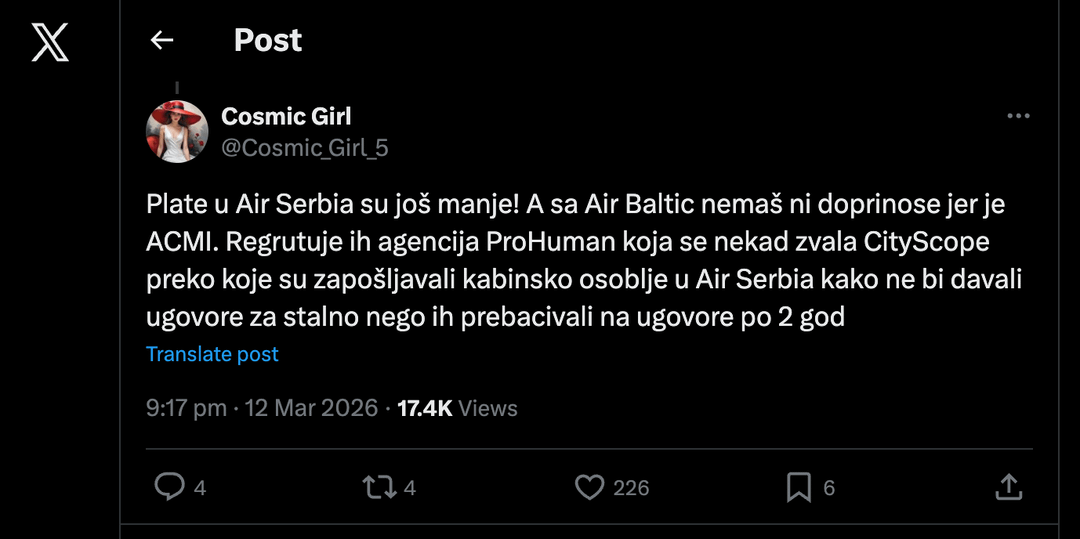 Ne volim air serbiu bulja su. Ali ne mozemo mi kao javnost znati sta je ovde istina a sta ne. Besmislica je ovome davati neki anti sns znacaj. Kukanje na twiterru je poslednja stvar koja je korisna za ovu osobu.