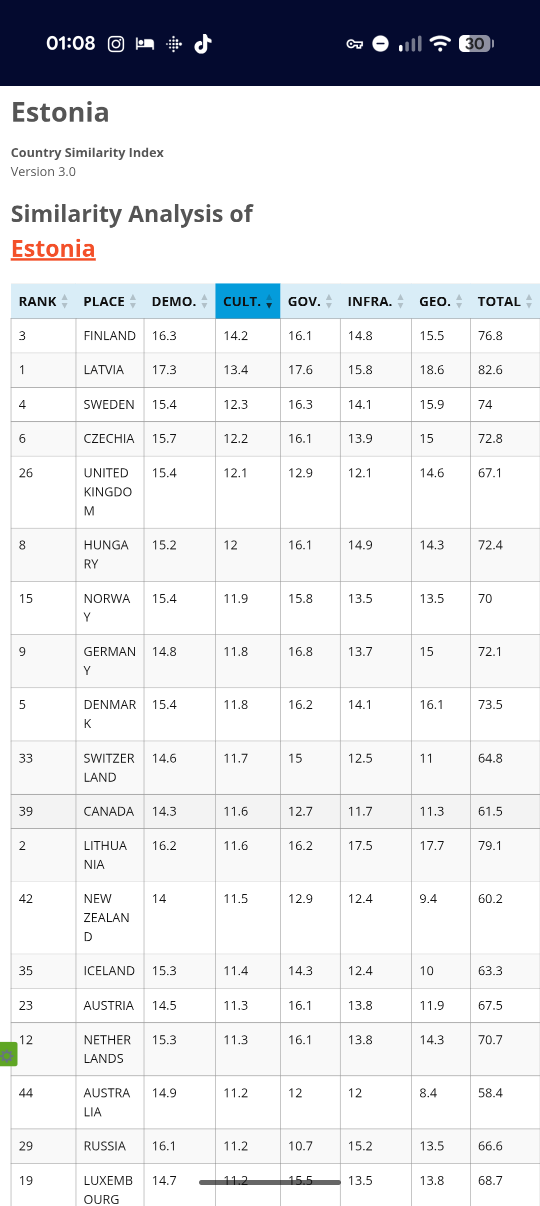 Ps è importante notare che la classifica generale per l’Estonia vede il Regno Unito molto più in basso, al 26° posto nell’indice di somiglianza dei paesi.
