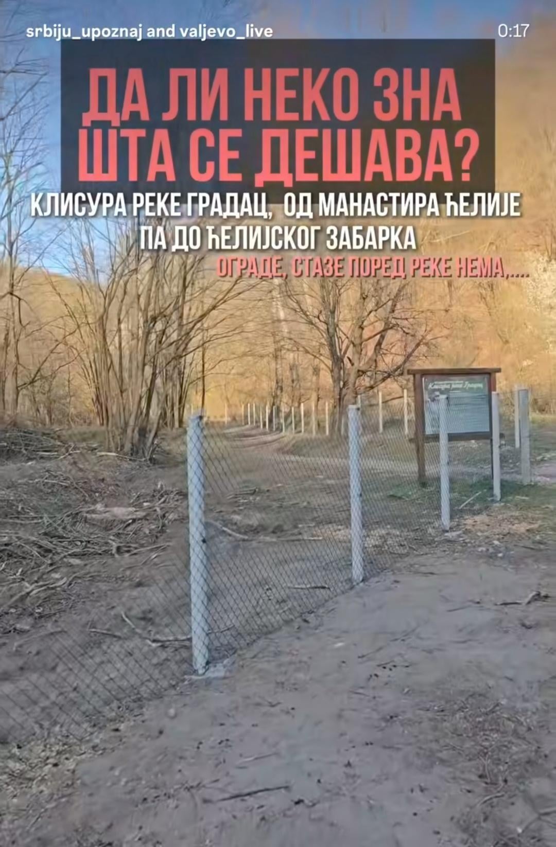 Prilaz reci Gradac ograđen je žičanom ogradom na potezu od Manastira Ćelije do Ćelijskog Zabaraka. Video-zapis koji prikazuje situaciju objavljen je na društvenim mrežama, na profilima @srbiju_upoznaj i @valjevo_live.