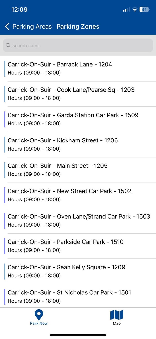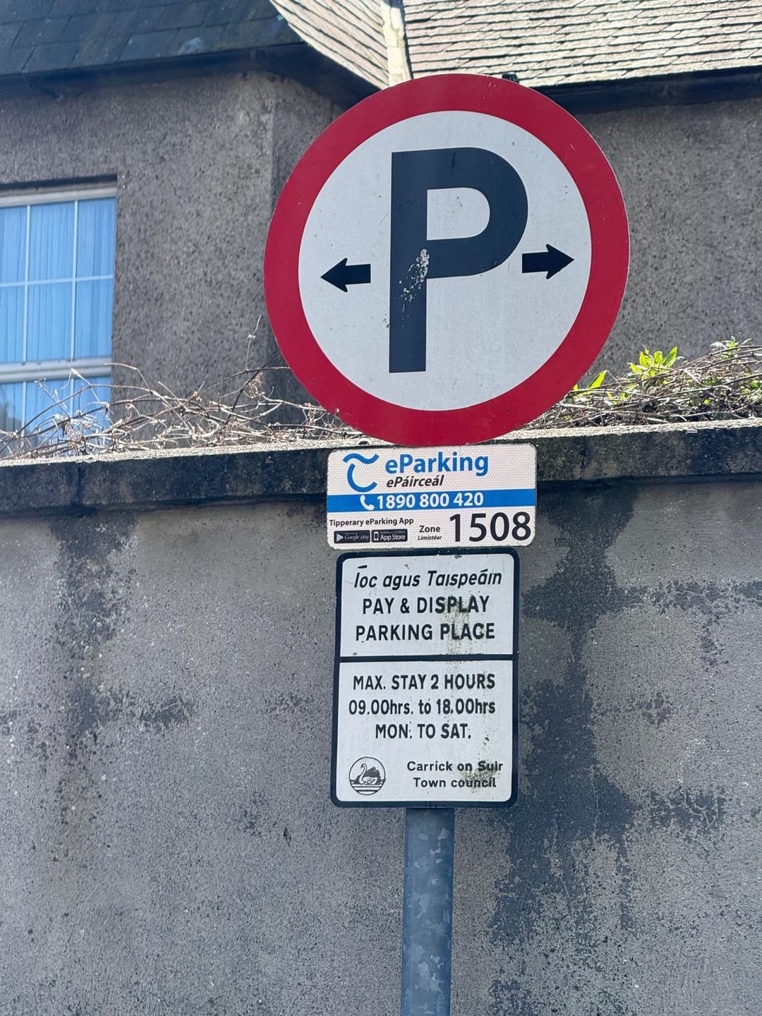 A Carrick-on-Suir. Non da qui. Parcheggiato. Scaricata l’app (come da segnaletica). Non esiste la zona 1508. Non esiste. Ho dovuto fare un’ipotesi e utilizzare la zona 1208 e spero che vada bene. Perché tutte le app del governo e del Comune sono una vera schifezza?