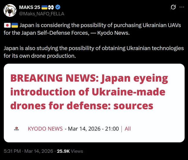Exlibro on 14/03/2026 21:25 I use to joke that NATO should join Ukraine, but now it is not even a joke.