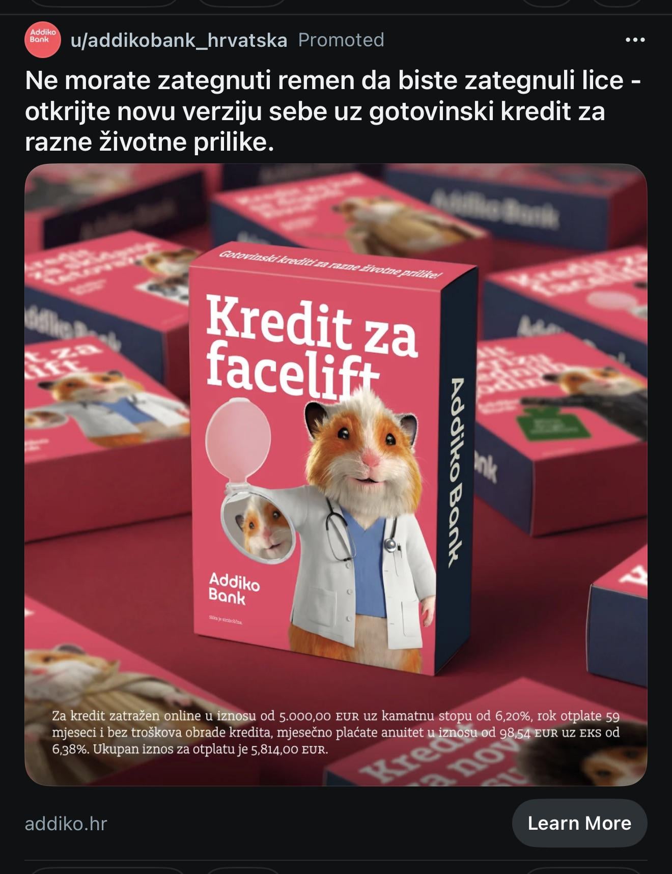 Zajebancija. Možda tako dobe više klijenata. Kvragu, i ja razmišljam da kod njih uzmem kredit.