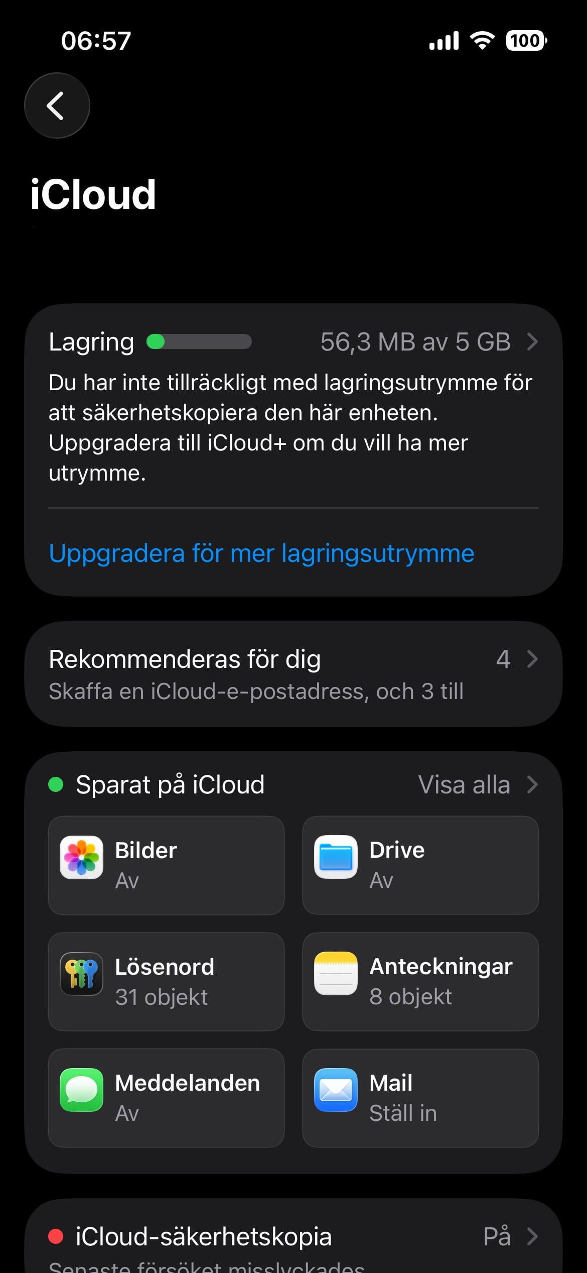Du saknar lagringsutrymme? Det står i rutan längst upp.
