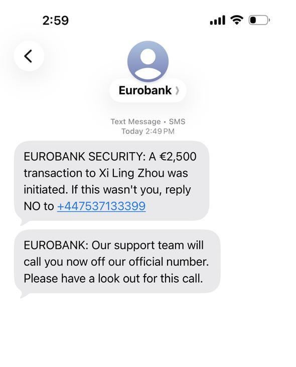Spirited-Ad6269 on 16/03/2026 14:04 Definitely a scam. I’ve received the same exact message but not for Eurobank but paypal. Exact text. Block the number