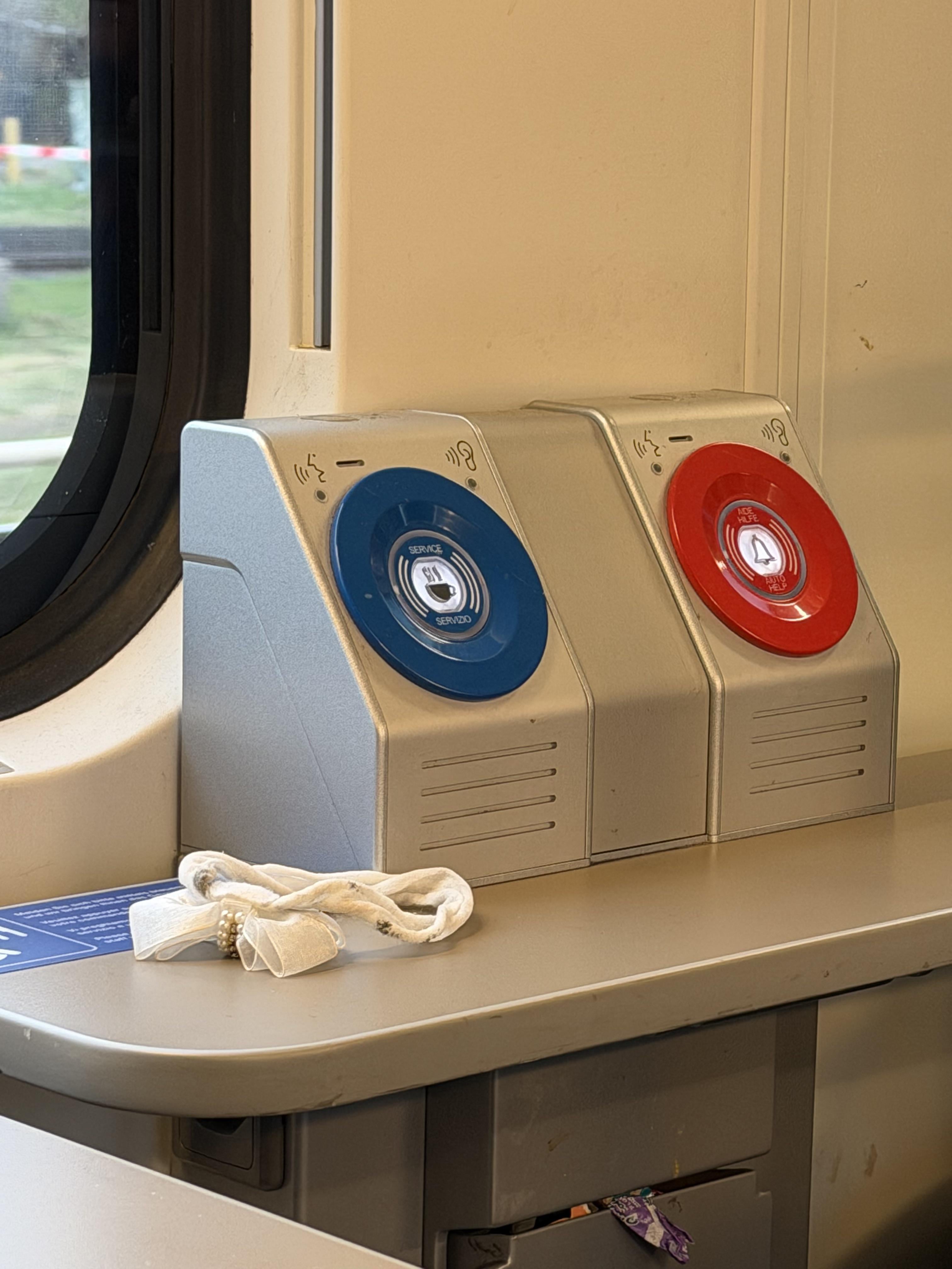 La prima volta che vedo (sono in Svizzera da sempre) il pulsante blu per chiamare l’addetto dal ristorante.