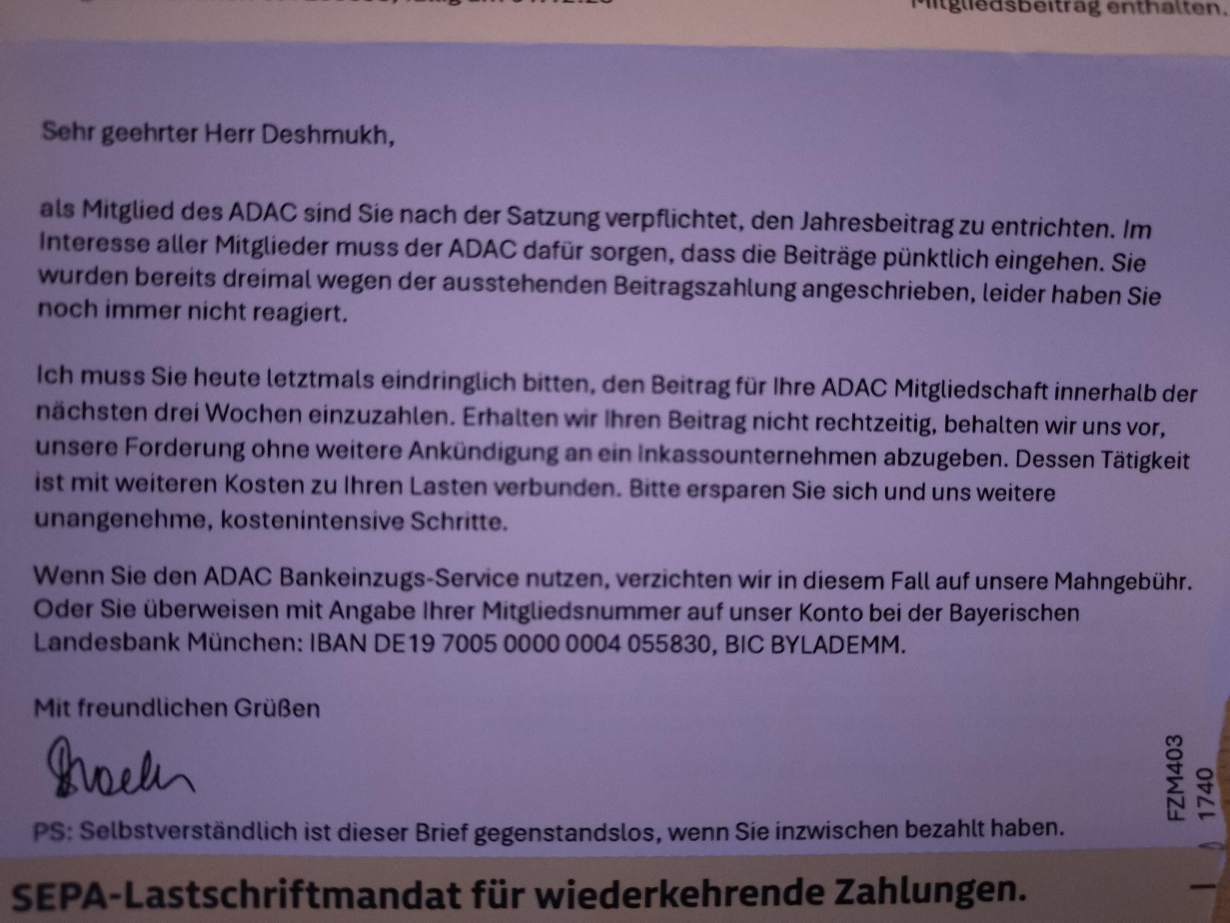 Well, apparently you signed up to become a member of ADAC – which obviously isn’t free. Why did you ignore all the other letters though? Problems in Germany don’t disappear with an ‘out of sight, out of mind’ mentality.