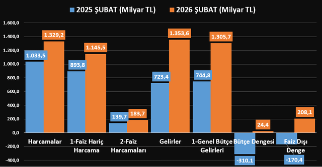 Il bilancio del governo centrale ha registrato un surplus di 24,4 miliardi di TL nel febbraio 2026.