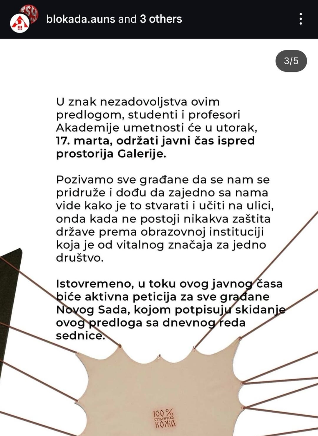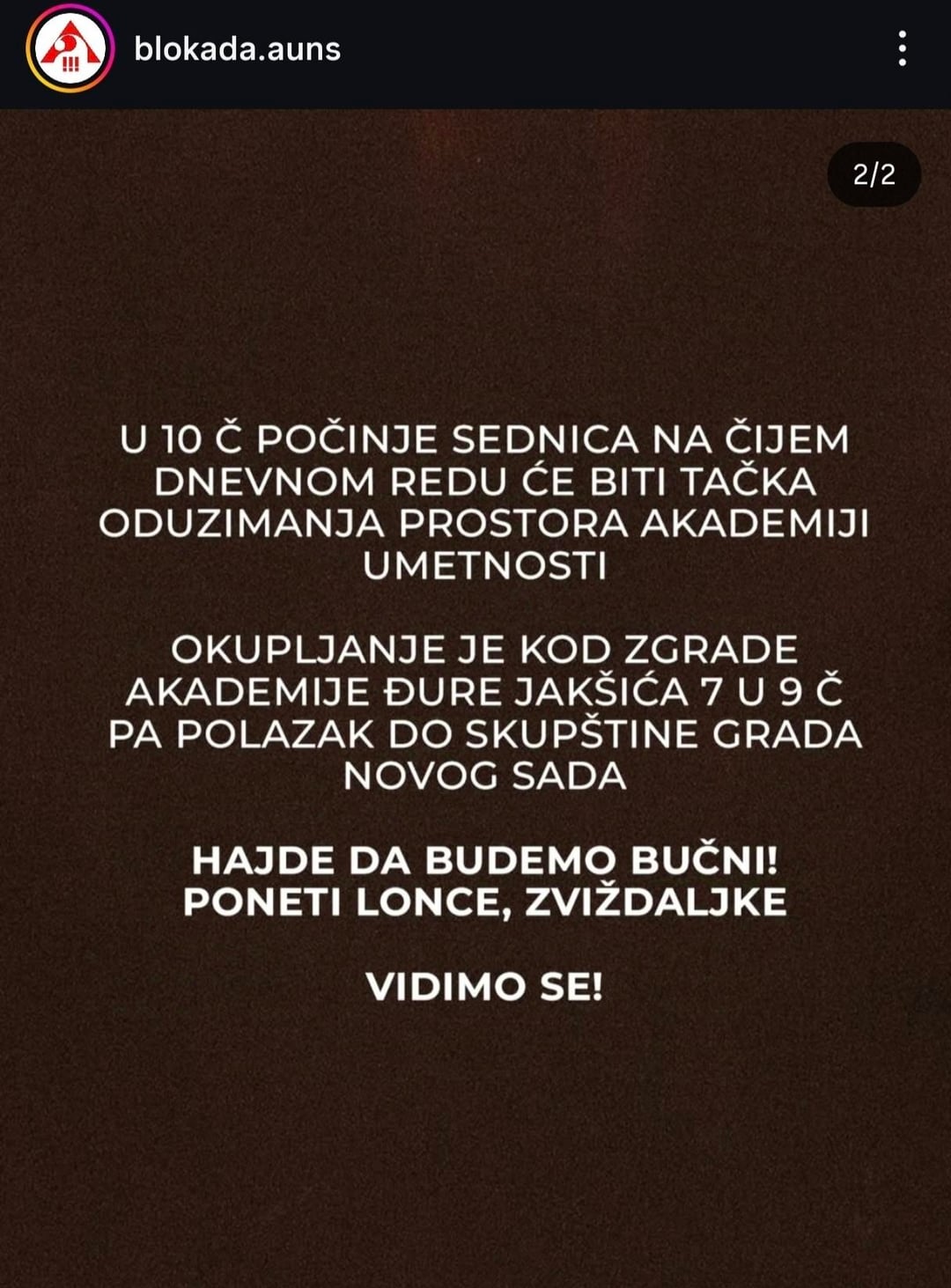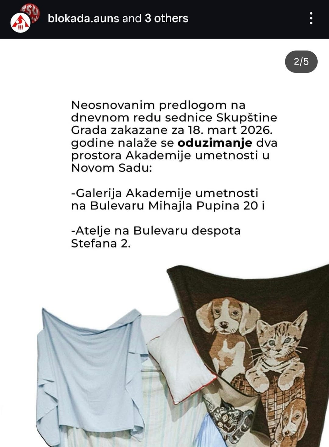 Domani alle 9 una protesta per un punto all’ordine del giorno della seduta dell’Assemblea della Città di Novi Sad, che ordina la confisca di due spazi dell’Accademia delle Arti.