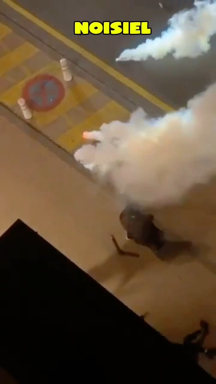 C’est quoi ce qui est allumé au milieu de l’interpellation ? Y’a un truc qui part au loin et un autre truc qui reste et semble être un lacrymo. Est-ce qu’ils ont foutu tout un tas de lacrymogènes dans la rue et ses alentours ?