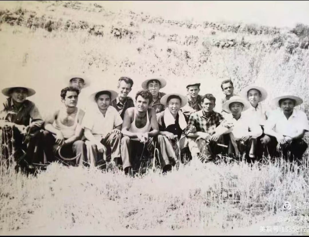 Anche le altre due foto di gruppo sono state scattate durante la sua permanenza lì (mio nonno è quello all’estrema sinistra nella seconda foto e all’estrema destra nella terza foto). Ci ha detto che gli ingegneri cinesi avrebbero aiutato gli agricoltori locali nella raccolta durante il loro tempo libero.