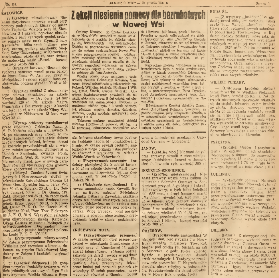 Dalla cronaca della polizia del 1932. Furono rubate un’oca e due anatre del valore di 16 PLN. È stato impedito il contrabbando di 63 arance dalla Germania.