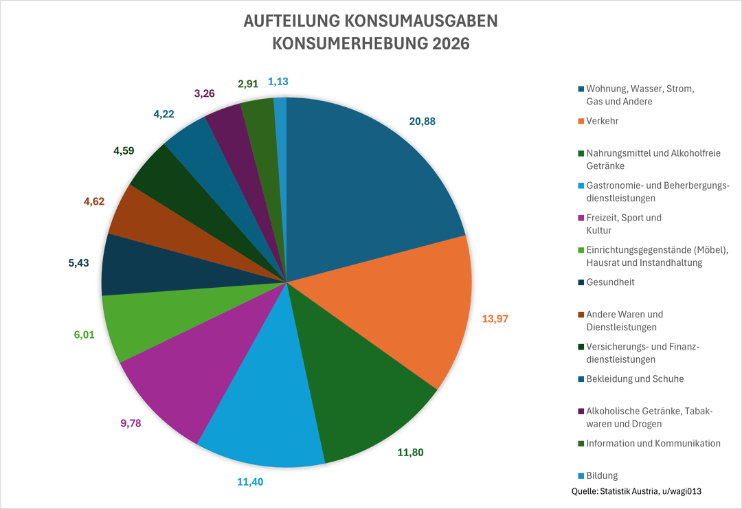 Knapp 21% für Wohnung, Wasser, Strom, Gas und Andere finde ich schon sehr wild. Gefühlt macht der Teil 30-50% der Konsumausgaben aus.